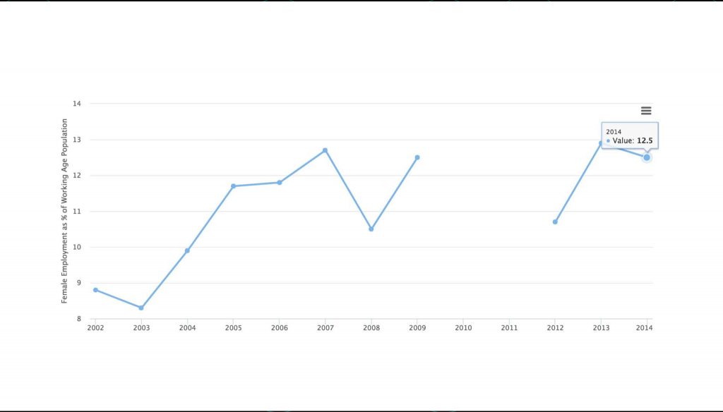 According to the 2014 Kosovo Labour Force Survey, the unemployment rate for women in Kosovo was 41.6%. Although very high, the unemployment rate for women has actually fallen significantly over the past 10 years. As recently as 2008 the unemployment rate was 59.6%, and going back to 2002 it was 74.5%.